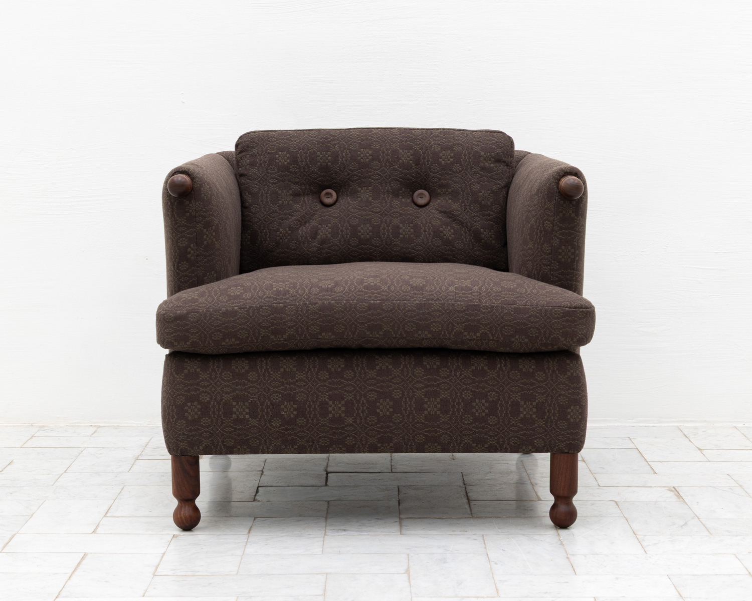 Built entirely from scratch and upholstered by hand in our Pennsylvania workshop with carved hardwood feet, a solid Douglas Fir frame, traditional joinery, hand-sewn closures. Available in a wide array of bddw fabrics. All BDDW upholstery frames are guaranteed for life.